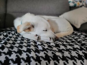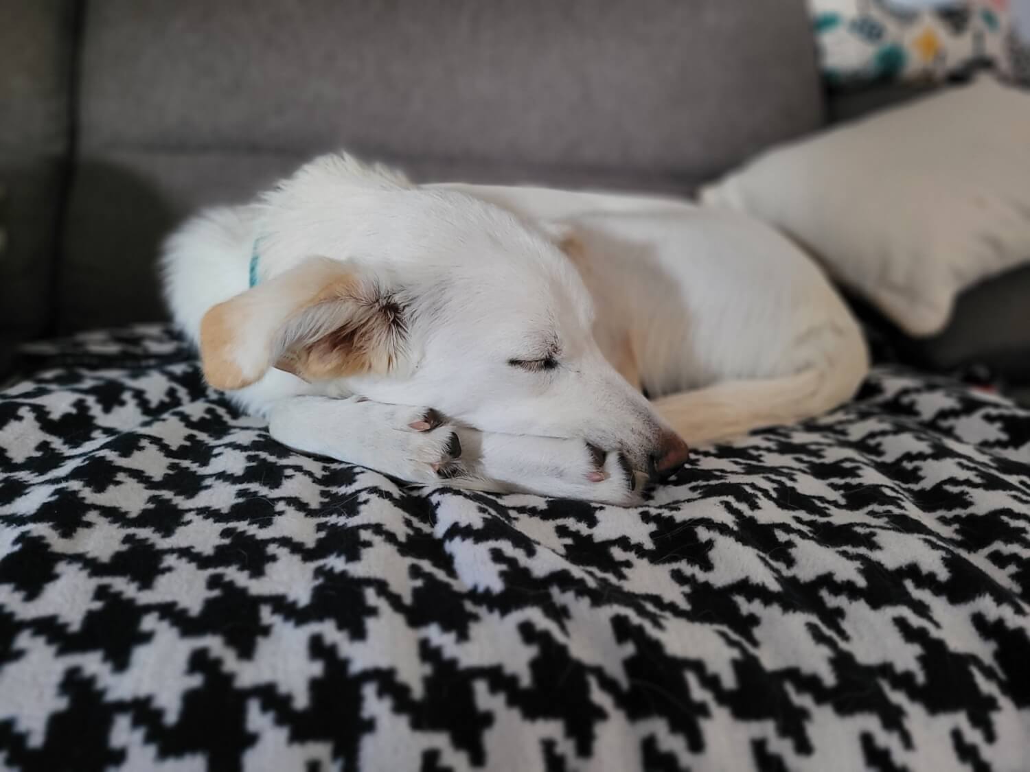 Belka ist angekommen! Und das hat gar nicht lange gedauert. Ratzfatz hat sie sich ihren Lieblingsplatz auf dem Sofa gesichert und unsere Herzen erobert.