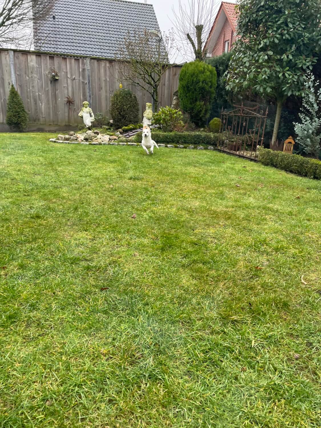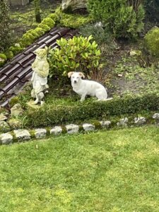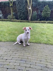 Flocke hat sich bis jetzt ganz gut hier eingelebt. Sie liebt ihr Körbchen und hat es auch von der ersten Minute an in Beschlag genommen. Wenn wir raus gehen, fühlt sie sich im Garten am wohlsten und flitzt wild durch die Anlagen.