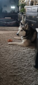 Hallo liebes Tierheim ich bin’s euer Husky Benno ich wollte mich mal eben kurz melden ich bin so glücklich bei meinen neuen Mama und Papa und möchte mich ganz herzlich bei euch bedanken dass ihr so lieb und nett für mich gesorgt habt mit meinen neuen Papa und Mama gehe ich mal ganz viel spazieren Fahrradfahren und ich darf immer überall mit hin und nach draußen habe ich überhaupt keinen Drang mehr zu schlafen denn ich schlafe lieber bei meinem neuen Mama und Papa im Schlafzimmer und abends kuscheln wir immer noch zusammen sie machen sich aber bisschen Sorgen weil ich bin ja nicht so der große Esser bin aber sonst ist alles ganz toll die loben mich auch immer wie toll ich das alles so mache um mit meiner neuen Schwester komme ich auch super klar so jetzt noch ein paar Bilder und ich sage erstmal tschüss ich melde mich noch mal wieder euer Benno