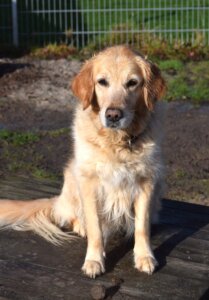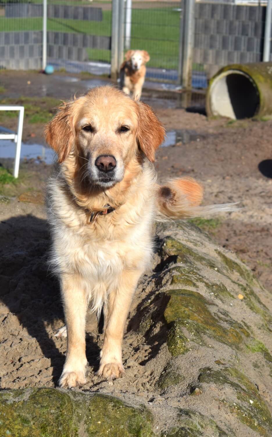 Golden Retriever Hündin Darlyn kam mit achtzehn weiteren Golden Retrievern durch eine Beschlagnahmung des Amtes zu uns. Endlich ist die Freigabe zur Vermittlung eingetroffen und wir suchen nun geeignete Interessenten, für neunzehn Golden Retriever. Sie sind bereits einige Wochen in unserer Obhut und zeigen sich freundlich, aufgeschlossen und menschenbezogen. Viele von ihnen kennen bereits Grundkommandos, sind lernwillig und verspielt. Gerne sind sie beim Menschen, sie suchen die Nähe, sind leinenführig und zeigen sich aktiv und unternehmungslustig. Ein eigener Garten sollte im neuen Zuhause vorhanden sein, Anfragen nehmen wir gerne telefonisch oder per Mail entgegen.