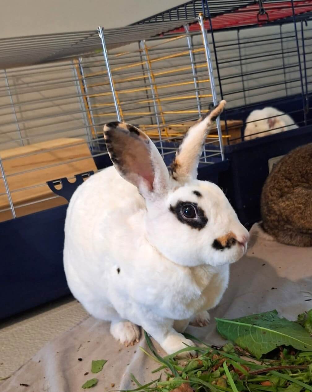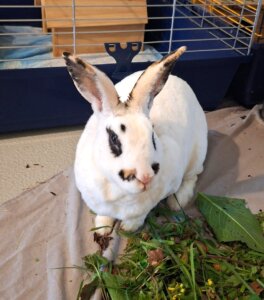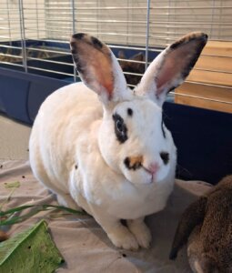 Die Rex Häsin Detta kam zusammen mit vierzehn weiteren Kaninchen aus einer Beschlagnahmung des Amtes zu uns. Nach ihrer Freigabe, darf sich nun auch Detta auf die Suche nach einem schönen Zuhause machen. Detta zeigt sich bei neugierig, sehr gesellig und lieb. Auch Detta wünscht sich ein Zuhause mit viel Platz zum Hoppeln und Haken schlagen, natürlich in weiterer Kaninchengesellschaft.