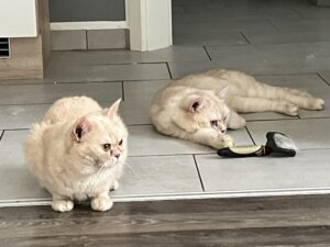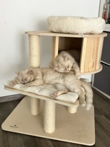 Heute, Samstag den 14-er Juni ist es wirklich warm, die beide Katzen haben sich angepasst an das Wetter und sind unglaublich entspannt.