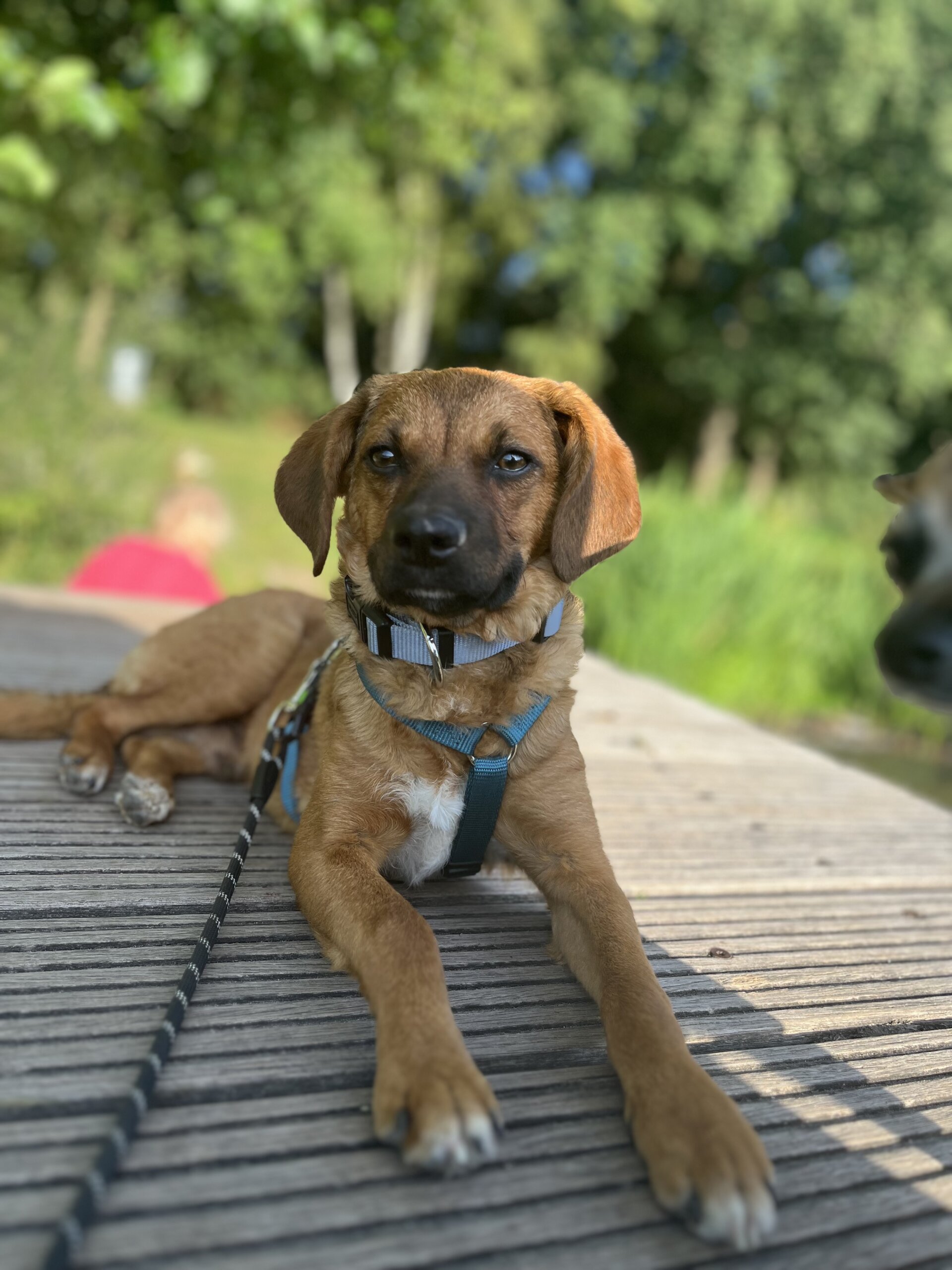 > Allgemein mag ich Kinder besonders gern. Auf neue Hunde und fremde gehe ich immer freudig zu. Das hätte ich gar nicht von mir erwartet. Ich lerne wirklich superschnell, kann schon Sitz und Pfötchen geben. Für Leckerchen mache ich alles besonders schnell.😅