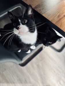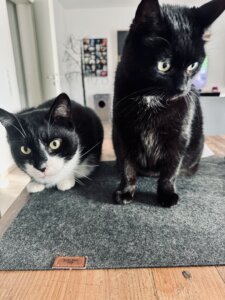 nun sind schon 2 Monate um und wir möchten euch ein kleines Update von Milo und Tigger geben 🙂 die beiden haben sich super eingelebt und Tigger hat schon an Gewicht verloren & jeden Mittwoch ist Wiegetag 🙂 . Beide verbringen gerne Zeit mit uns Menschen aber auch zu zweit .Besonders Milo hat sich als richtiger Kuschelkater entpuppt .Bis auf ein paar Männer typische Rauferein sind die beiden ein Herz und eine Seele . Bei Tigger ist leider festgestellt worden das er eine Niereninsuffizienz im Frühstadium hat . Da ich vorher eine Katze mit der selben Krankheit besessen habe , sind wir aber voll im Thema drin und kümmern uns super um ihn . Es kam nicht in Frage ihn deshalb zurück zu geben 🙂 wir haben es früh genug gemerkt und können gegensteuern . 🙂