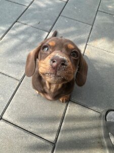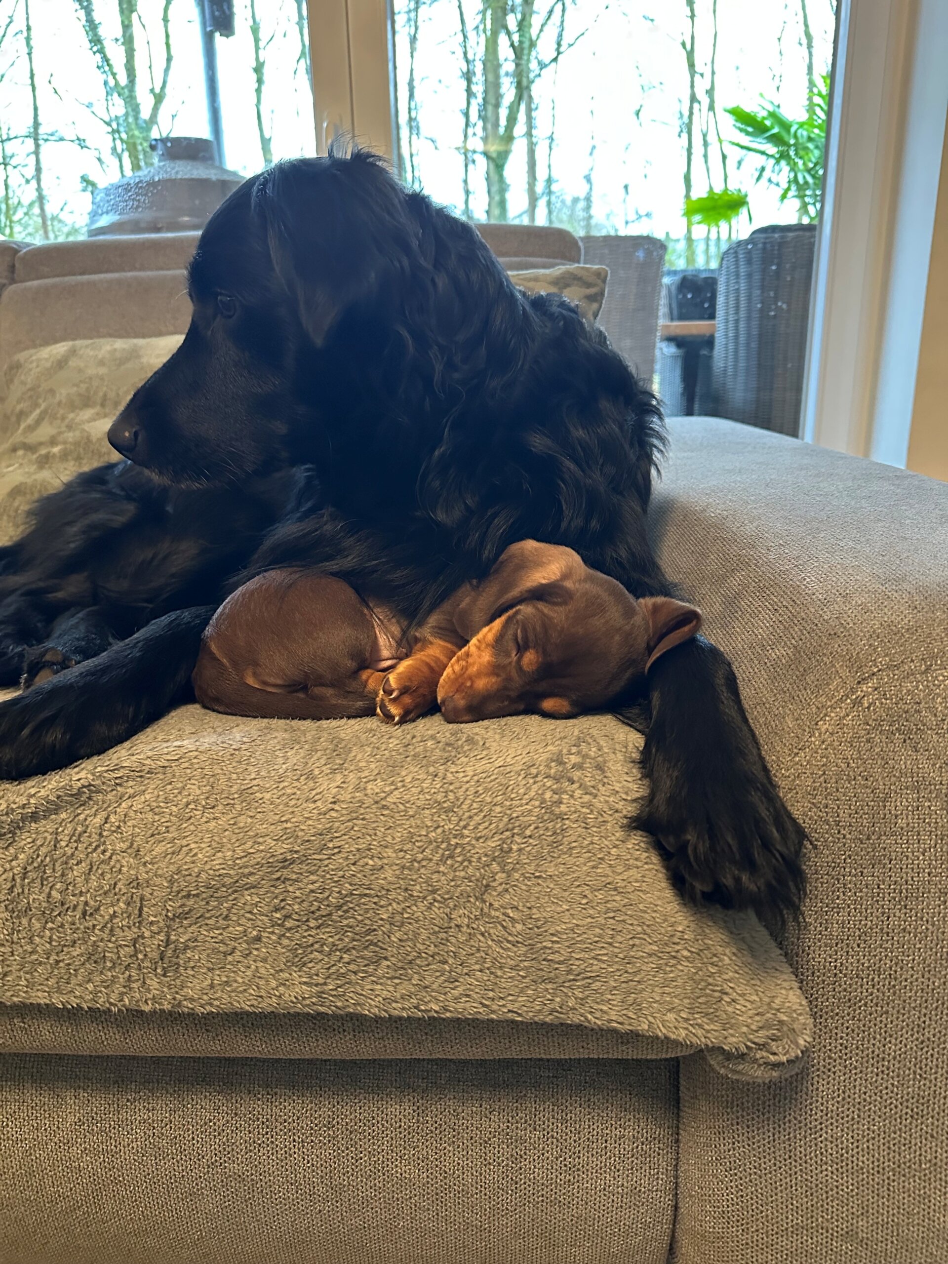 In unseren Ersthund Cooper ist er total verliebt. Yoshi orientiert sich stark an ihm, was ihm sichtlich guttut.