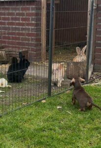 Vor den Kaninchen hat er aktuell noch Respekt, was wir überhaupt nicht schlimm finden, vermutlich wird sich das im Laufe der Zeit noch etwas ändern.